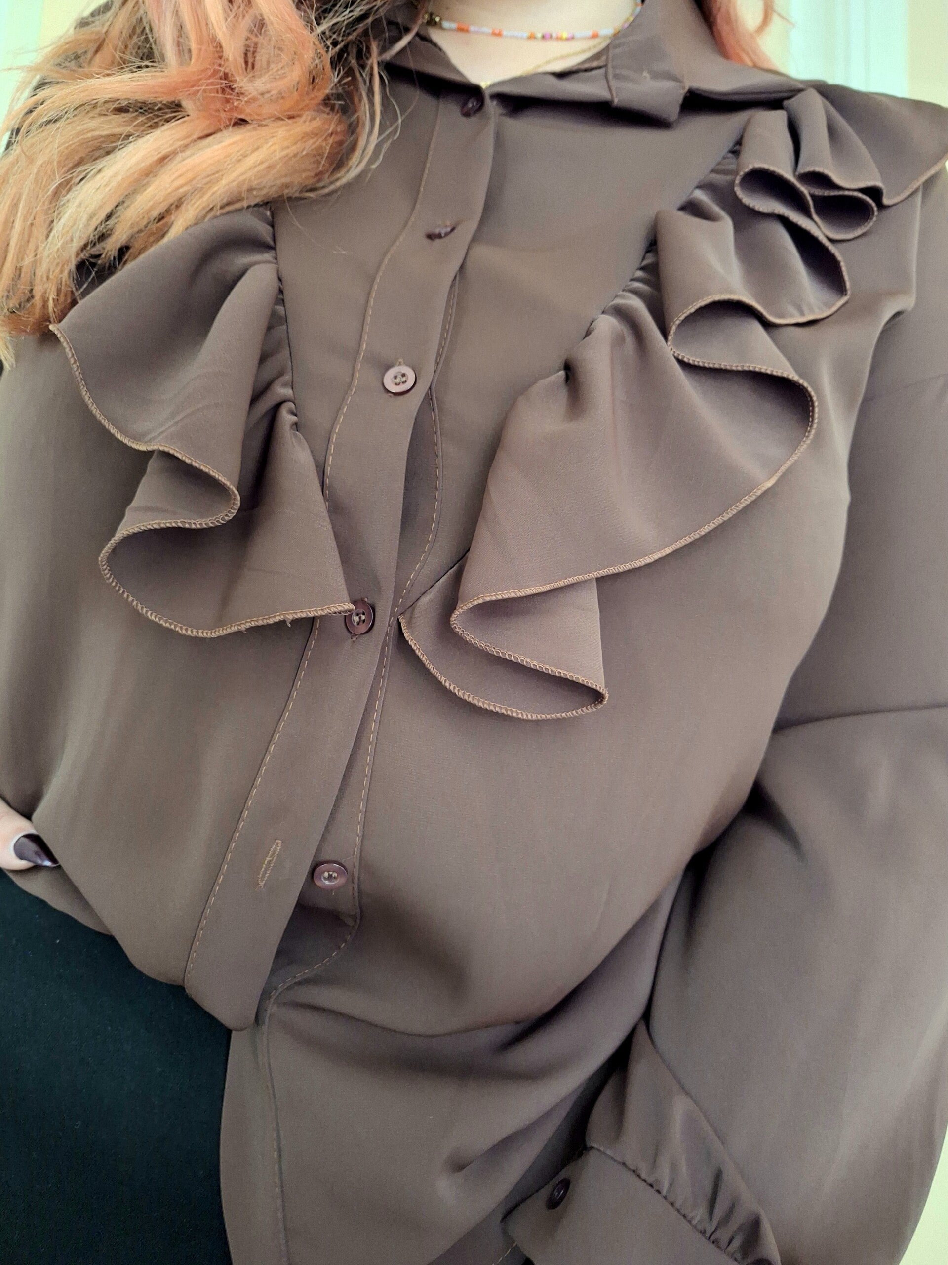 Leuke blouse met ruffles op de borst. Heeft een leuk westernlookje