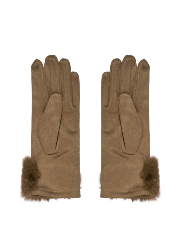 HANDSCHOENEN SUEDE FAUX FUR - CAMEL
