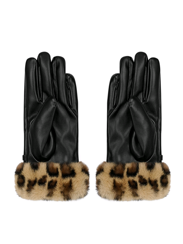 Leuke en warme handschoenen met een panterprint (nep)bontje en riempje