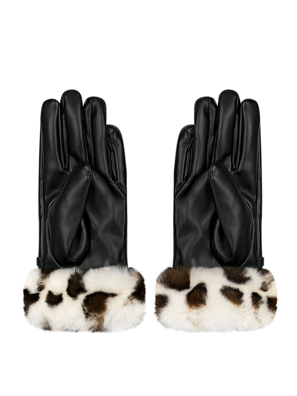 Leuke en warme handschoenen met een panterprint (nep)bontje en riempje