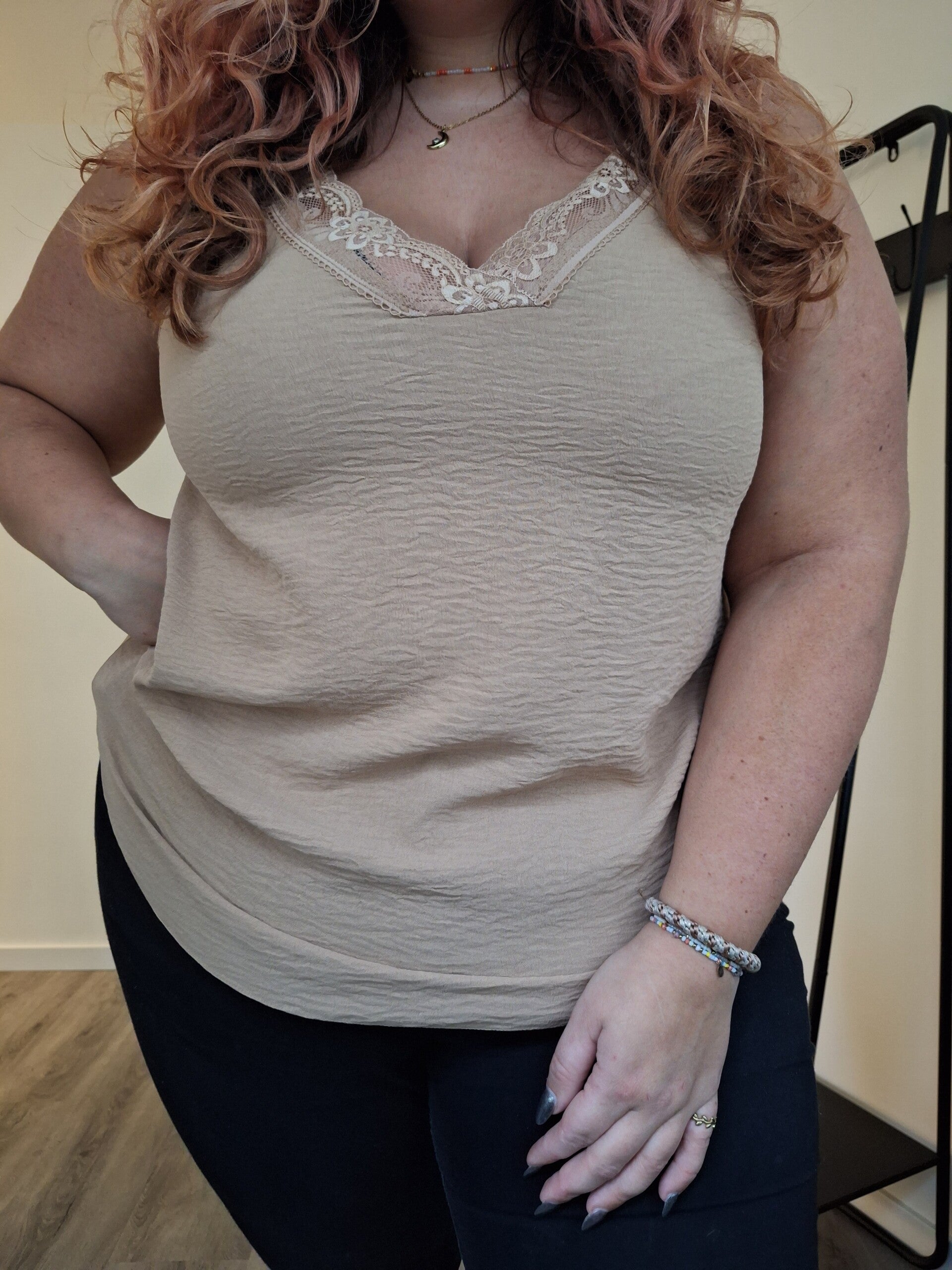 Fijne top met kant. Heeft elastiek aan de achterzijde.