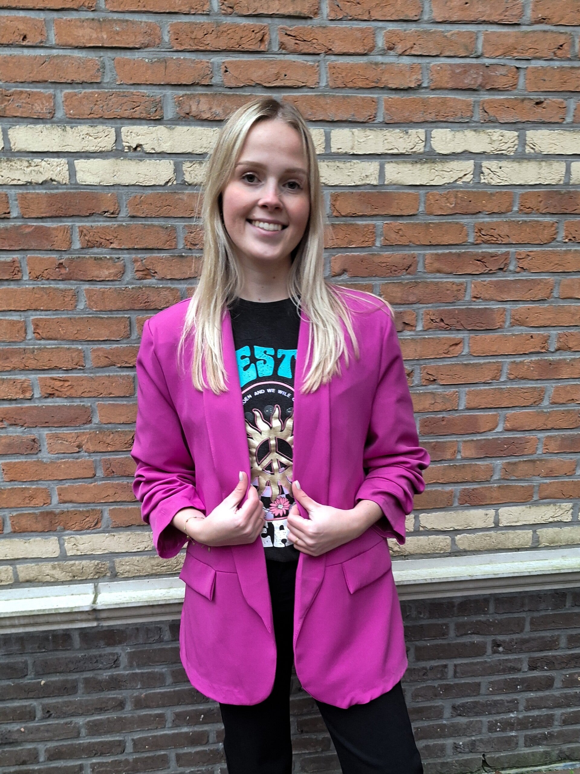 Toffe ruimvallende blazer met gesmokte mouwen!