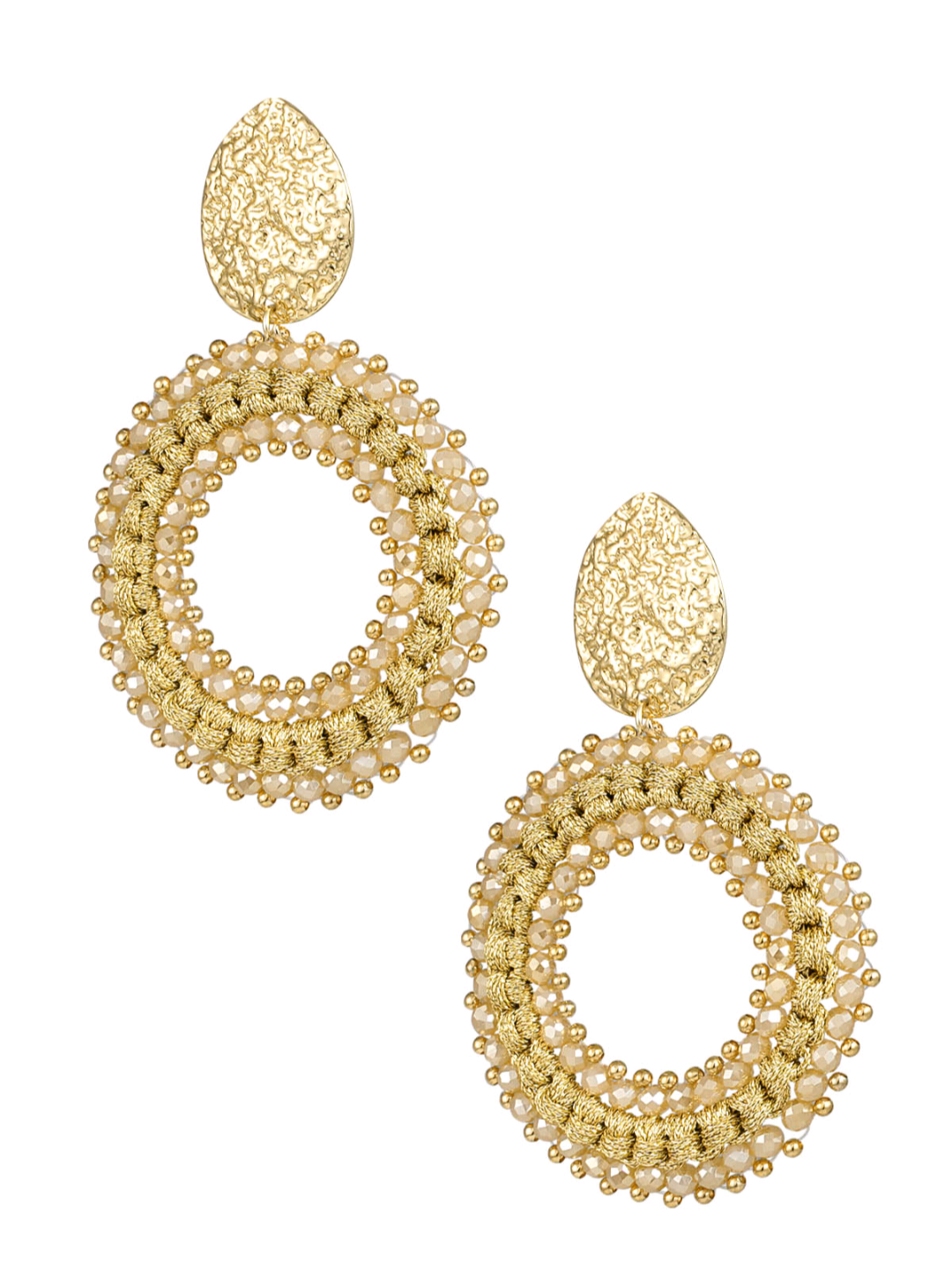 OORBELLEN ROND MET KRALEN - BEIGE