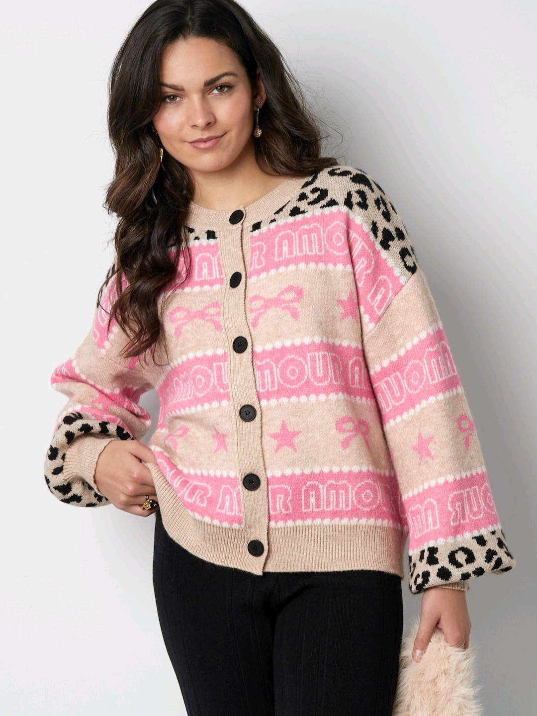 Vrolijk geprint vestje met knopen. Heeft veel stretch en lekker warm.