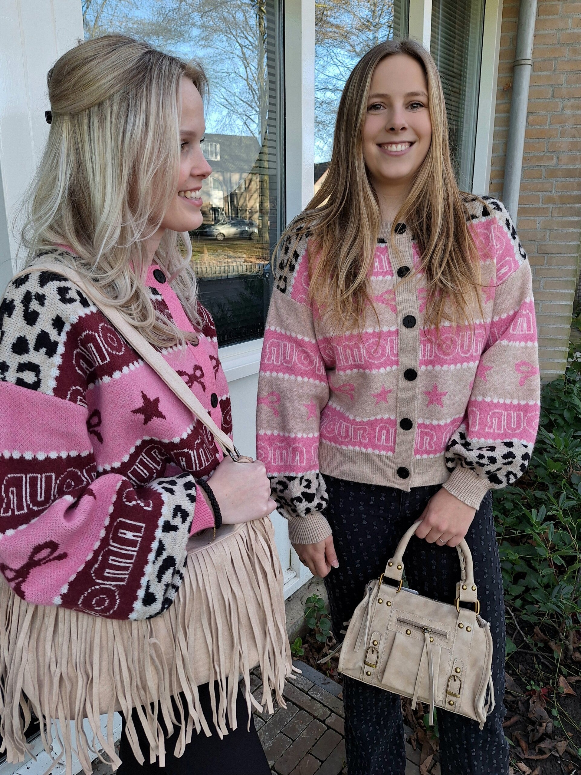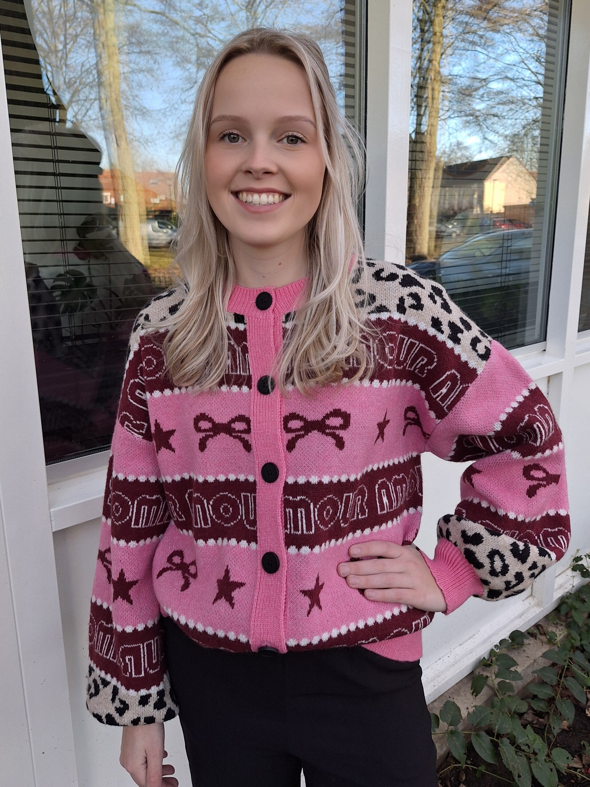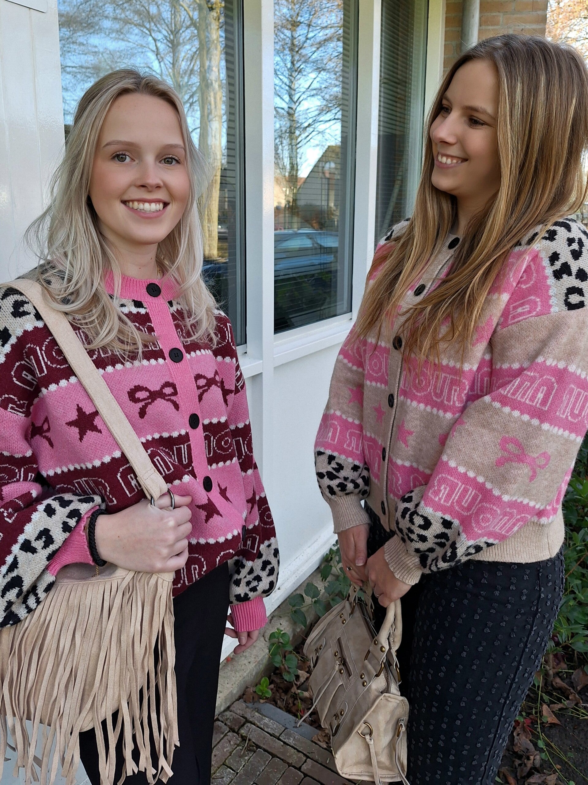 Vrolijk geprint vestje met knopen. Heeft veel stretch en lekker warm.
