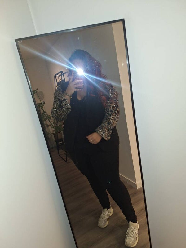 Hele toffe blazer met pailletten mouwen in panterprint. De mouwen hebben een leuk koortje om ze te laten blousen!