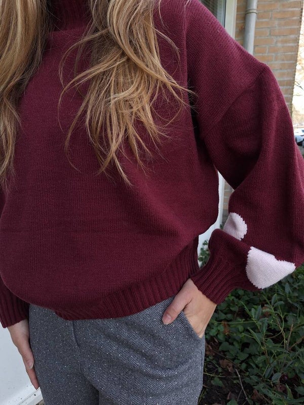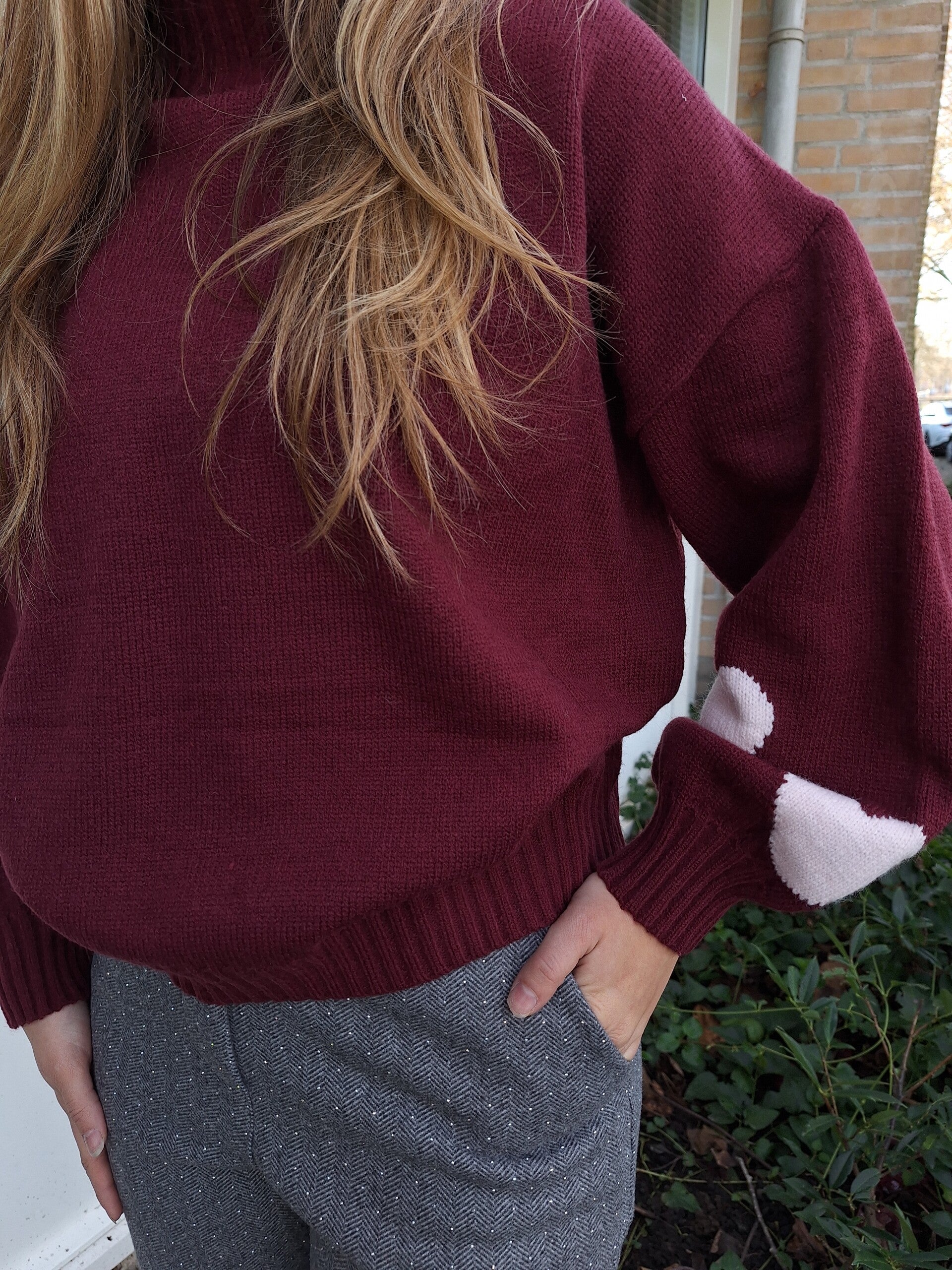 Heerlijk zacht en warm truitje met hartjes op de mouwen.