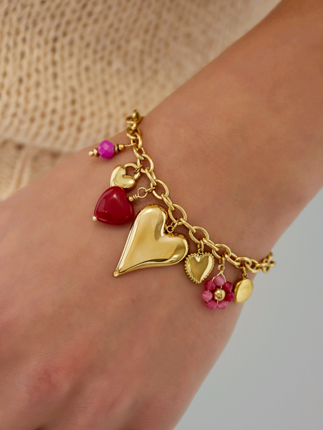 BEDELARMBAND CHARM & CHILL - GOUD/FUCHSIA
