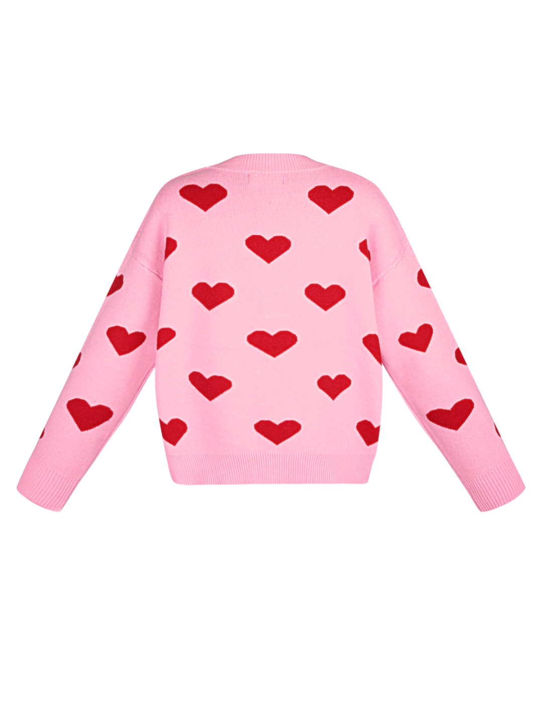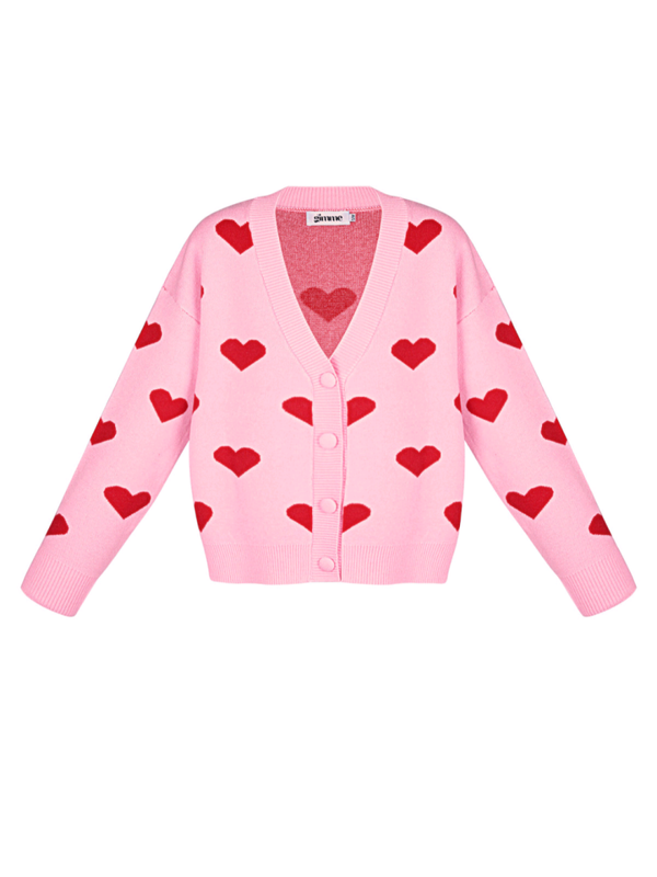 Leuk roze vestje met roze hartjes. Het vestje is lekker stevig en warm, valt oversized en is afgewerkt met roze knopen. Zowel open als dicht leuk te dragen!