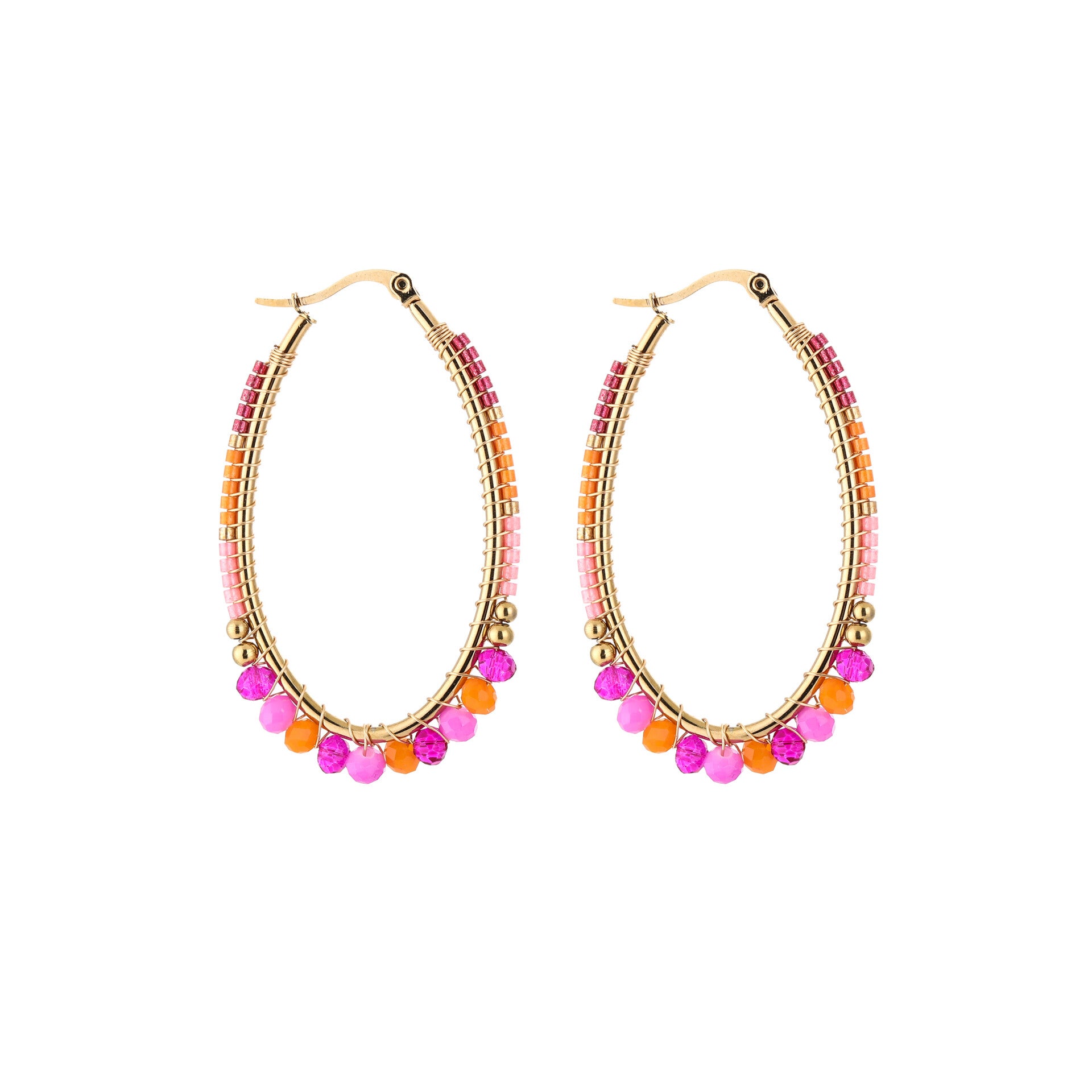 OORBELLEN JE17015 - GOUD/FUCHSIA/ORANJE
