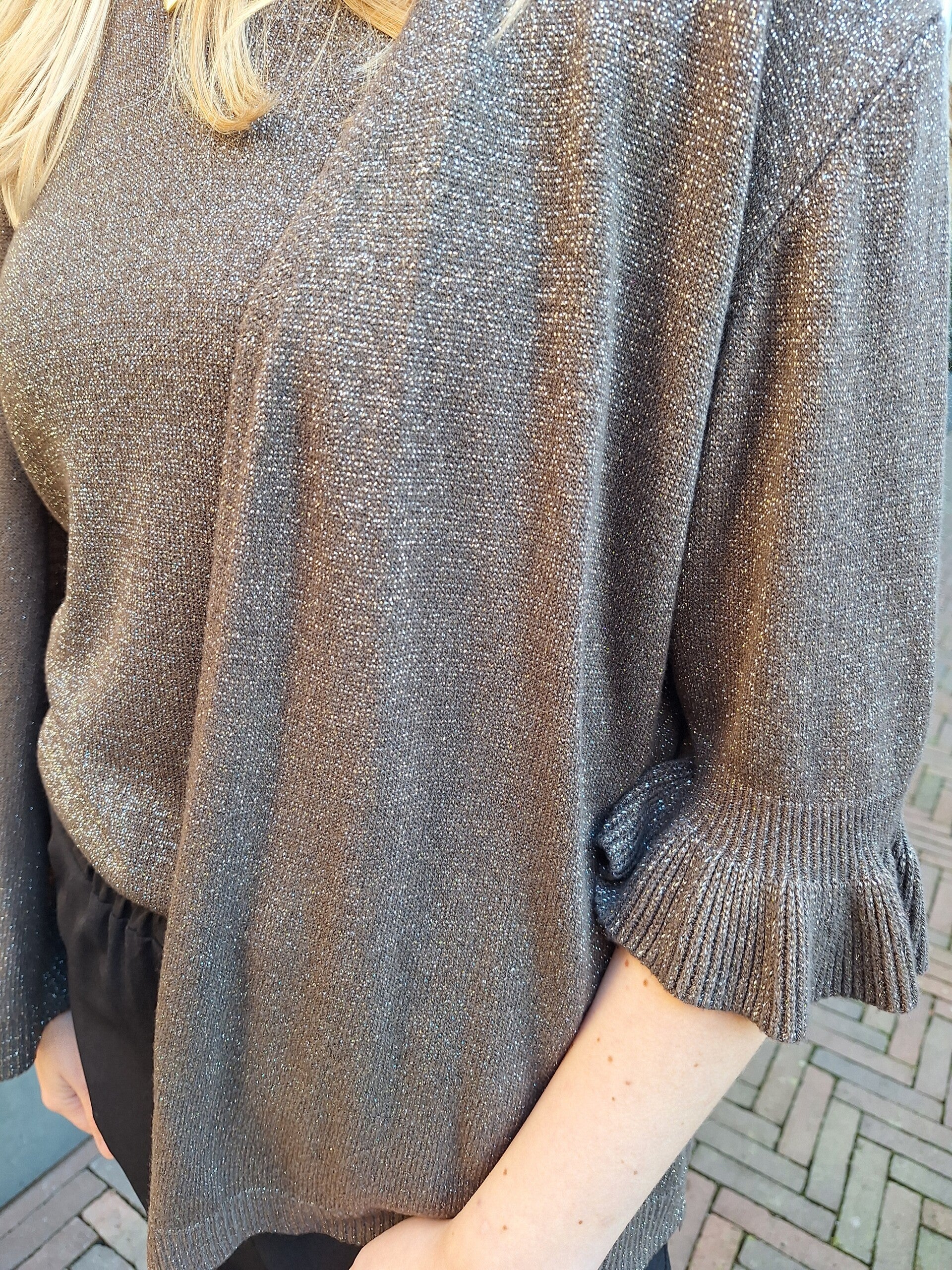 Leuk setje bestaand uit een topje en een vestje. Het vestje heeft halflange ruffel mouwtjes!