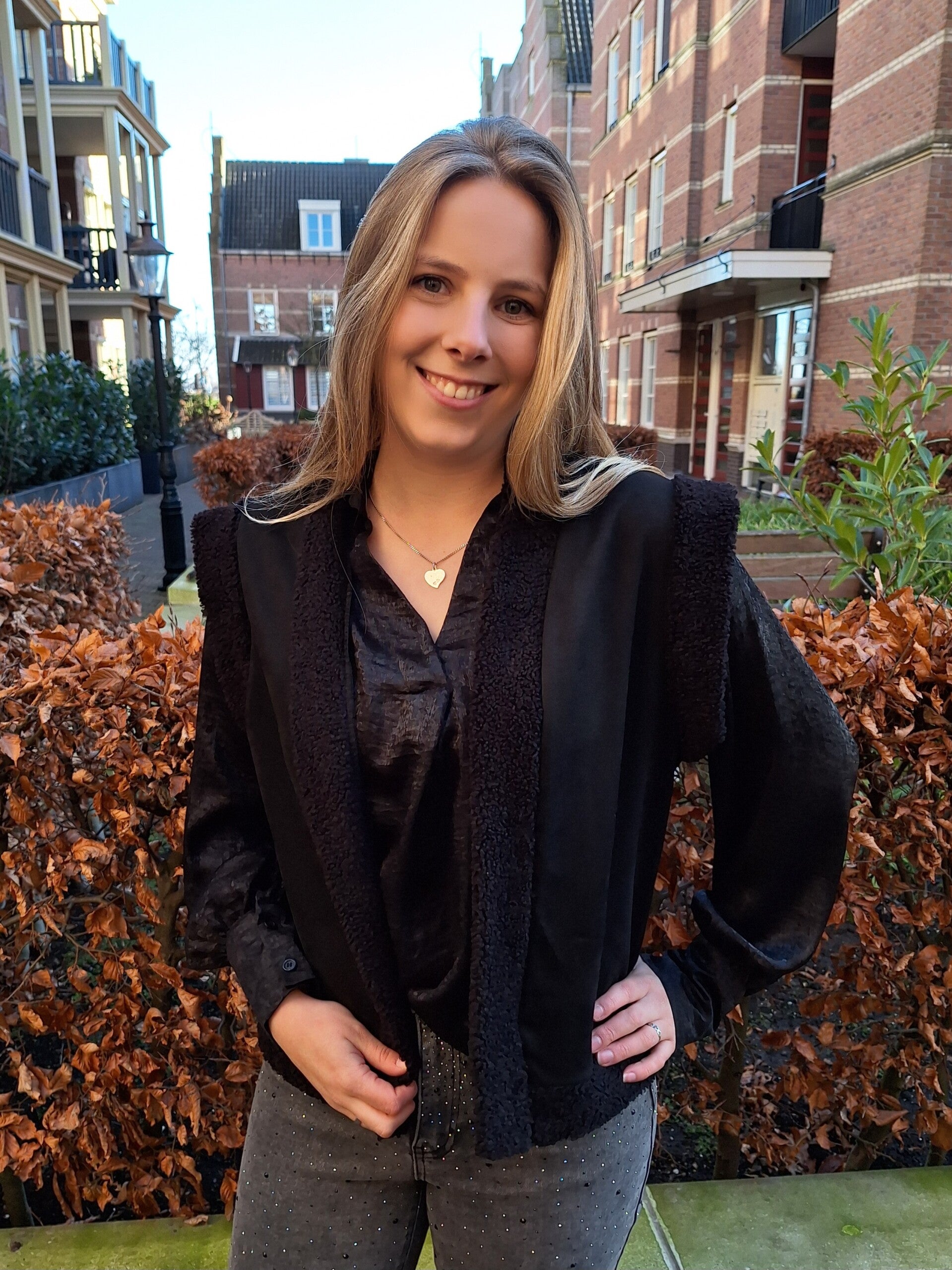 SUEDINE GILET MET TEDDY - ZWART
