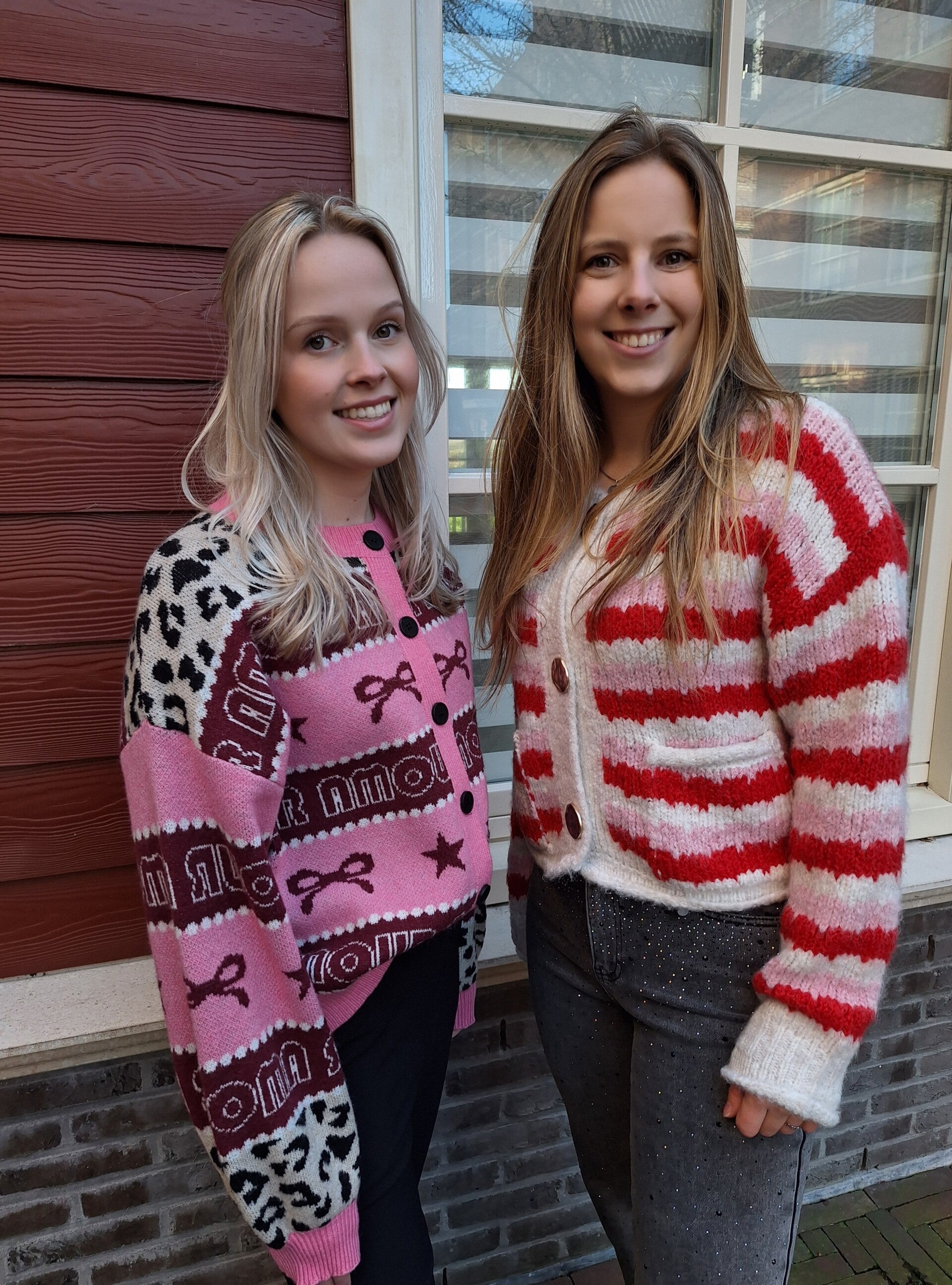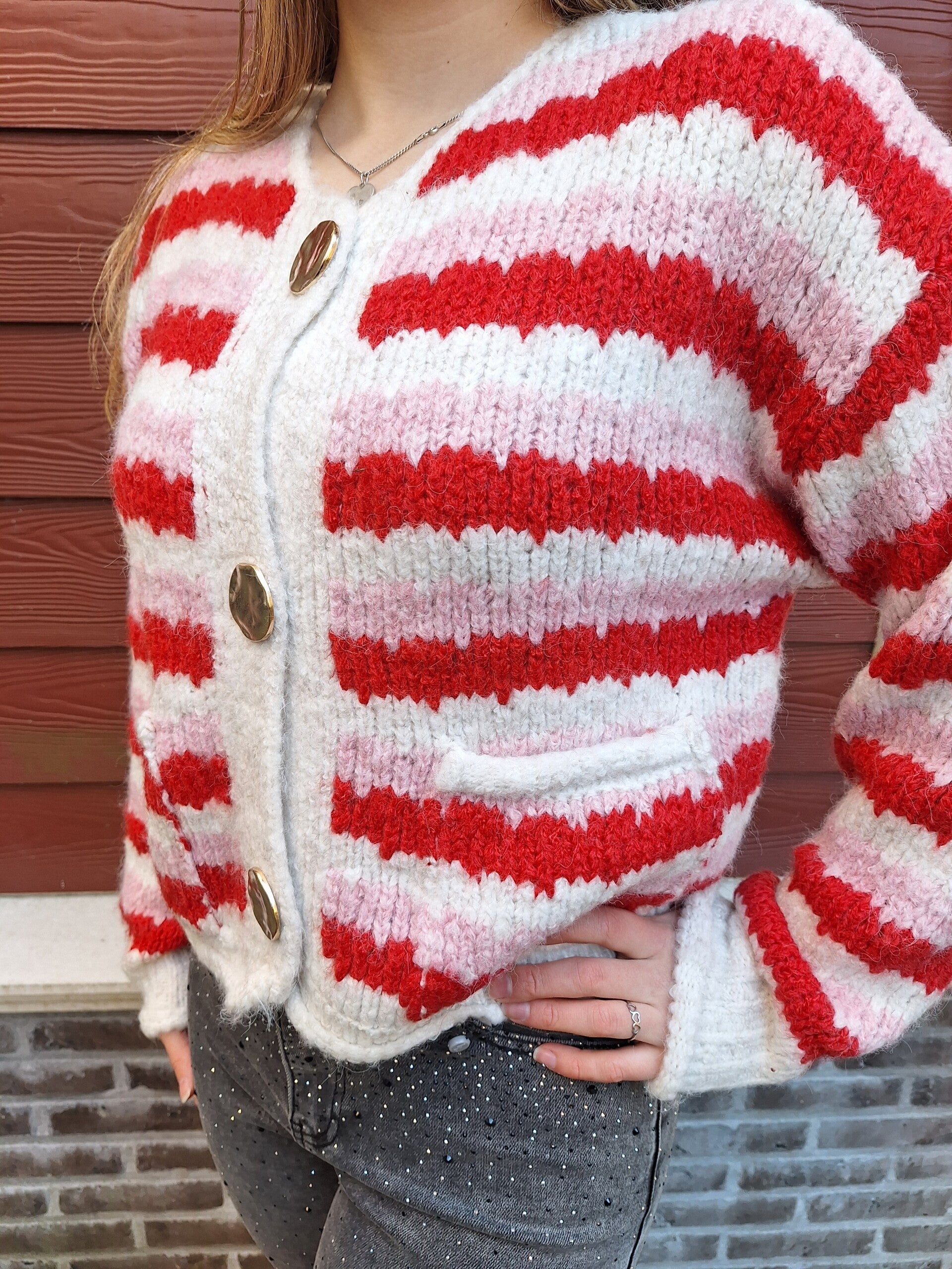 GESTREEPT VESTJE MET GOUDEN KNOPEN - ROZE/ROOD
