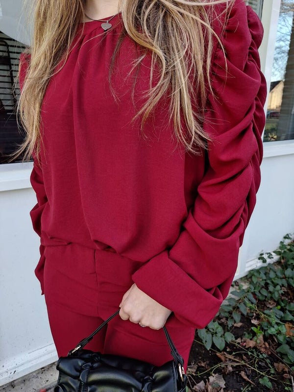 Mooi, comfortabel comfypakje. De top heeft te gekke pofmouwen! Comfortabel én chique gaan perfect samen met dit pak!
