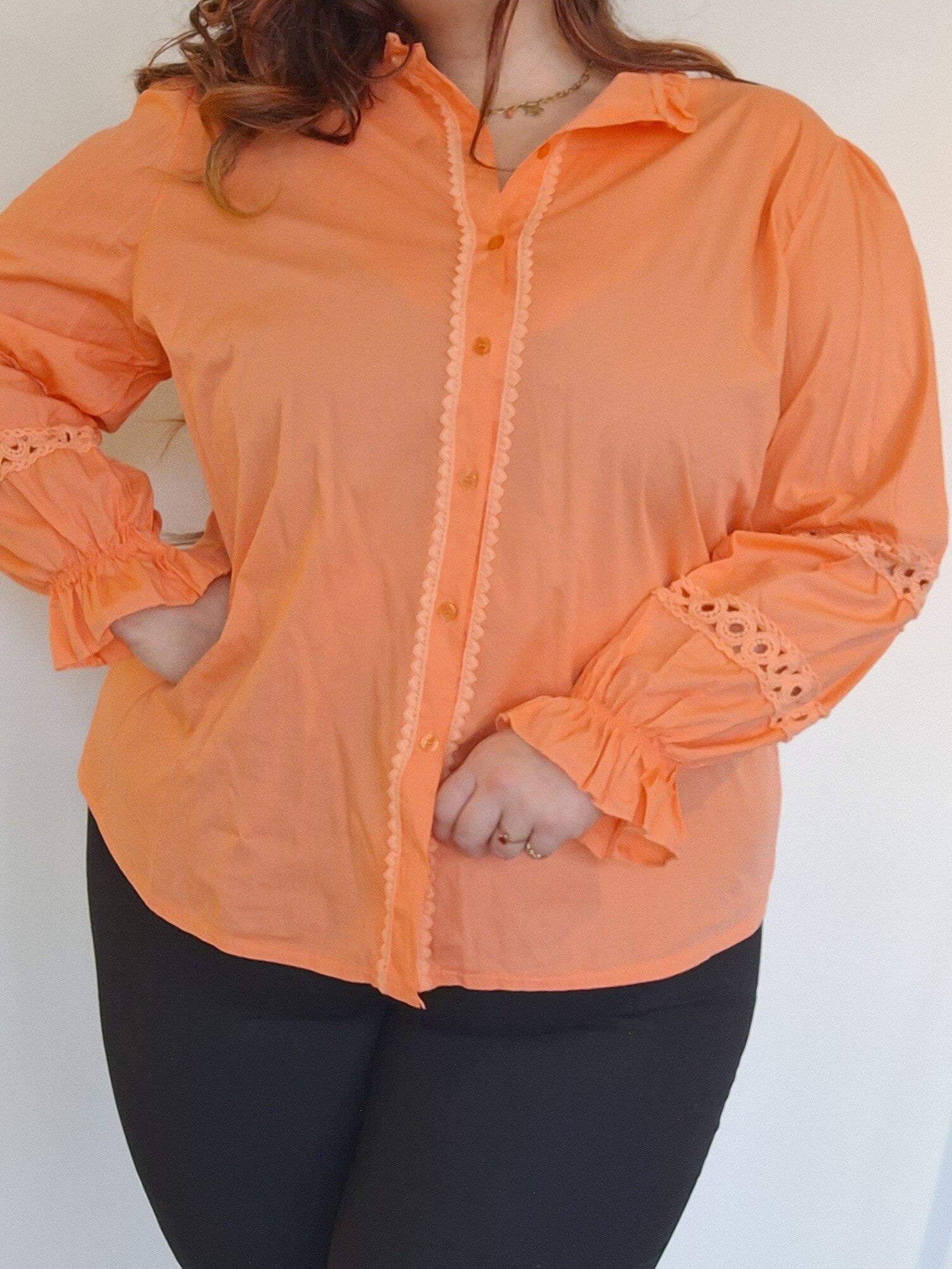 KATOENEN BLOUSE MET BRODERIE - ORANJE