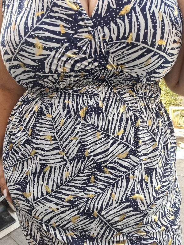 Mooie, lange travelstofjurk met elastiek in de taille. De jurk is mouwloos, heeft koordjes om de schouders aan te trekken en leuke gouden details!