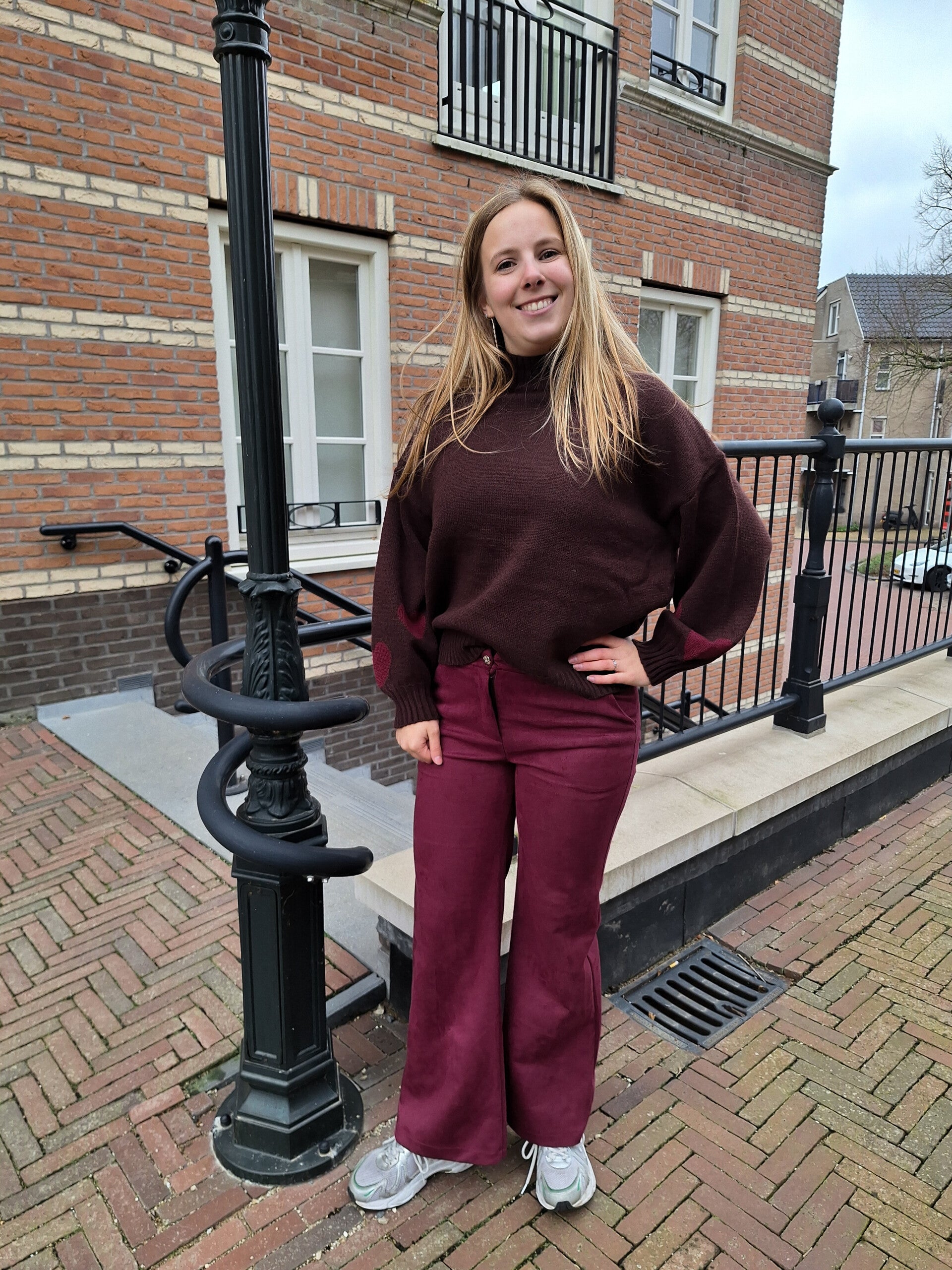 Heerlijk zacht en warm truitje met hartjes op de mouwen.