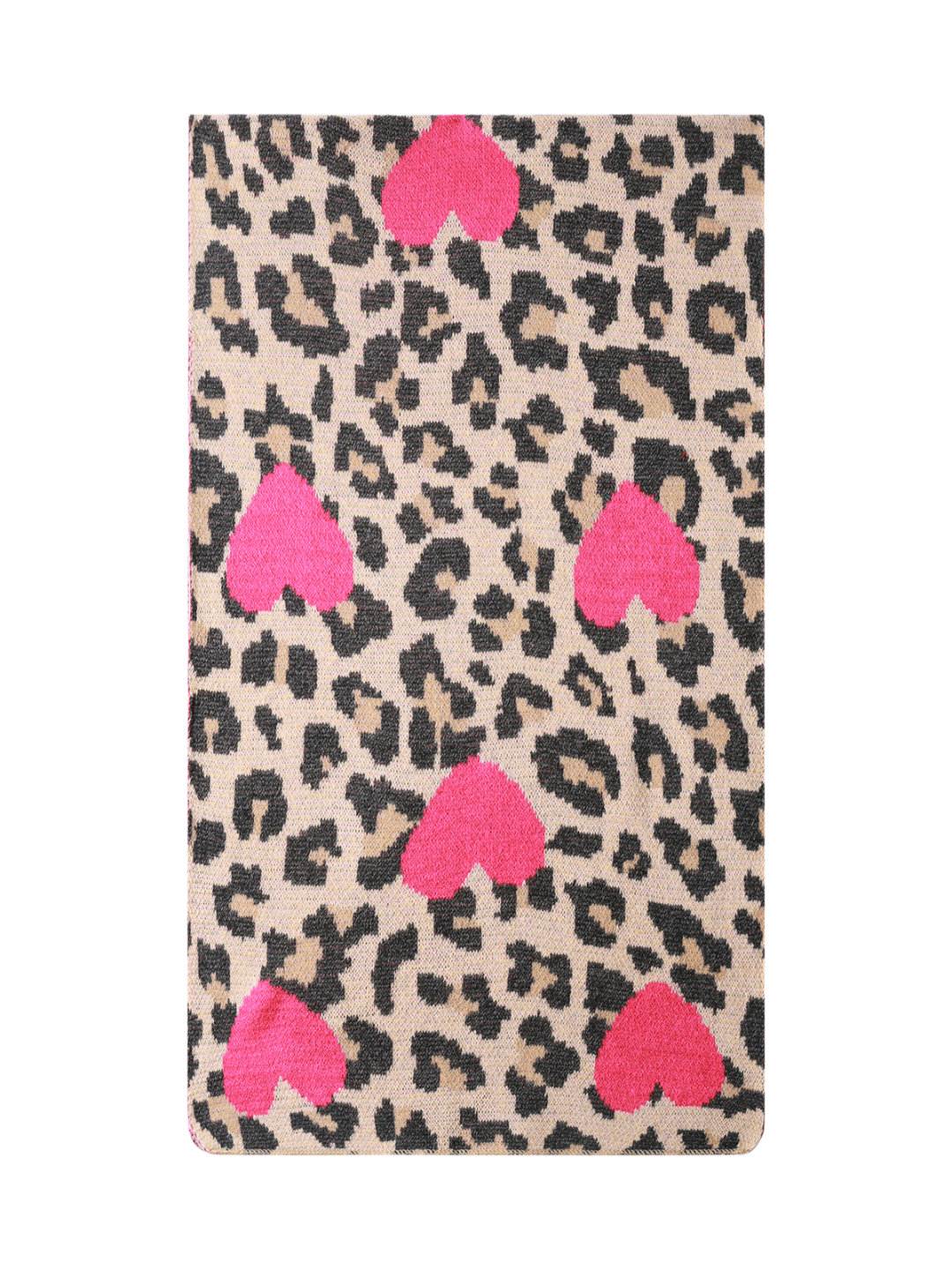 SJAAL PANTERPRINT MET HARTJES - BEIGE/ROZE