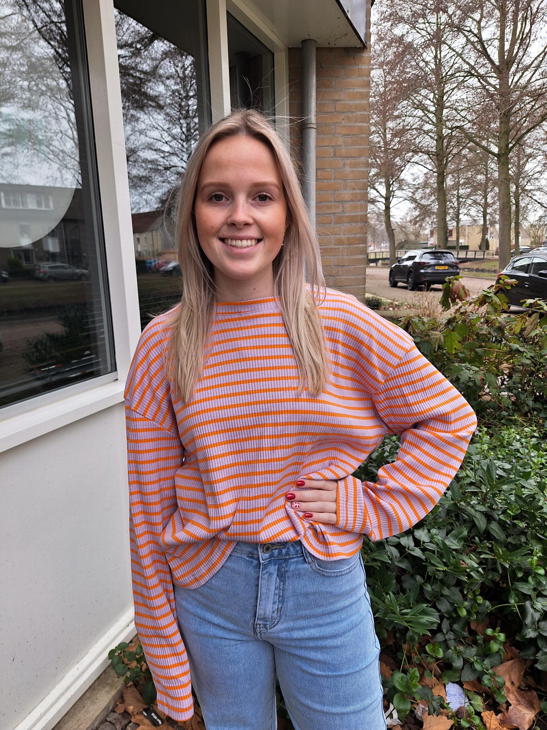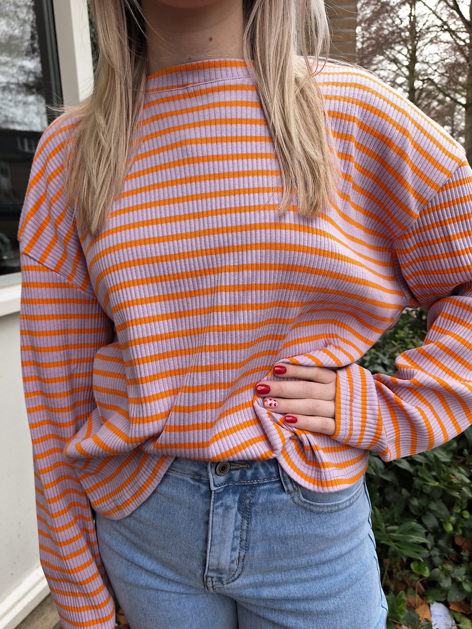AZZURRO OVERSIZED GESTREEPTE TOP - LILA/ORANJE