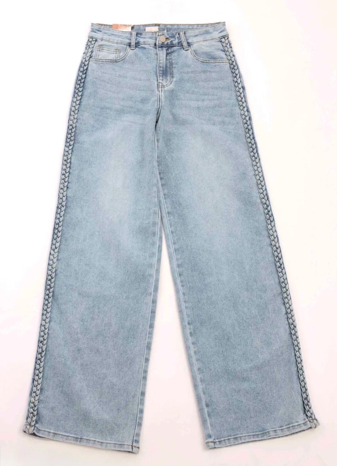 Toffe jeans met vlechtdetail langs de broekspijpen. Deze straight leg jeans bevat uiteraard stretch en valt goed op maat!