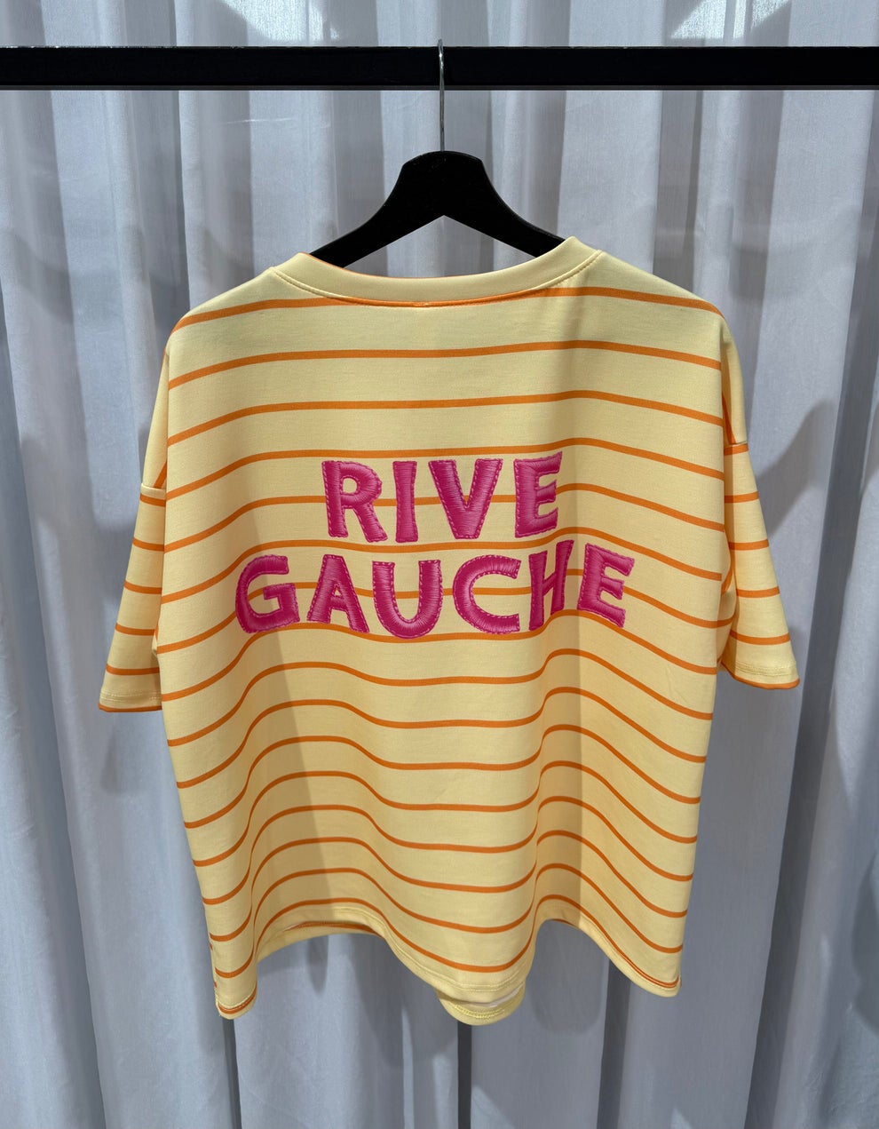Leuk t-shirtje met streepjespatroon en opdruk op de voor- en achterkant.