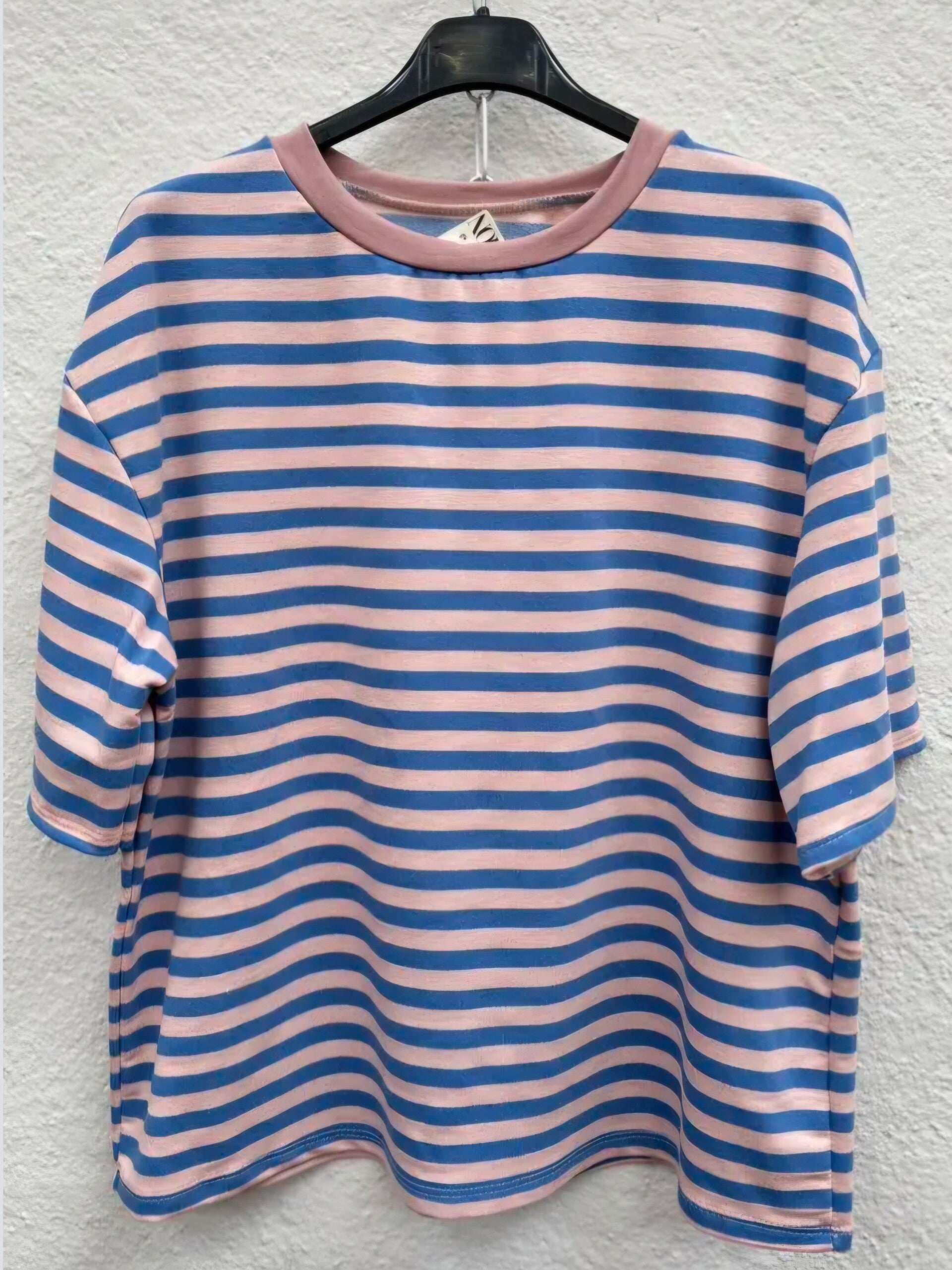 GESTREEPT T-SHIRT - LICHTROZE/BLAUW