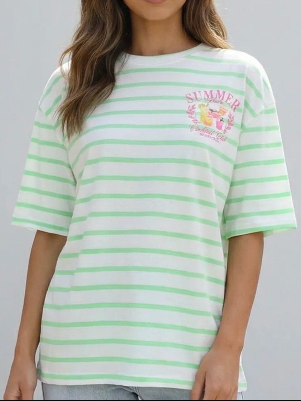 Heel tof t-shirtje met streepjes en toffe opdruk op zowel de voor- als achterkant.