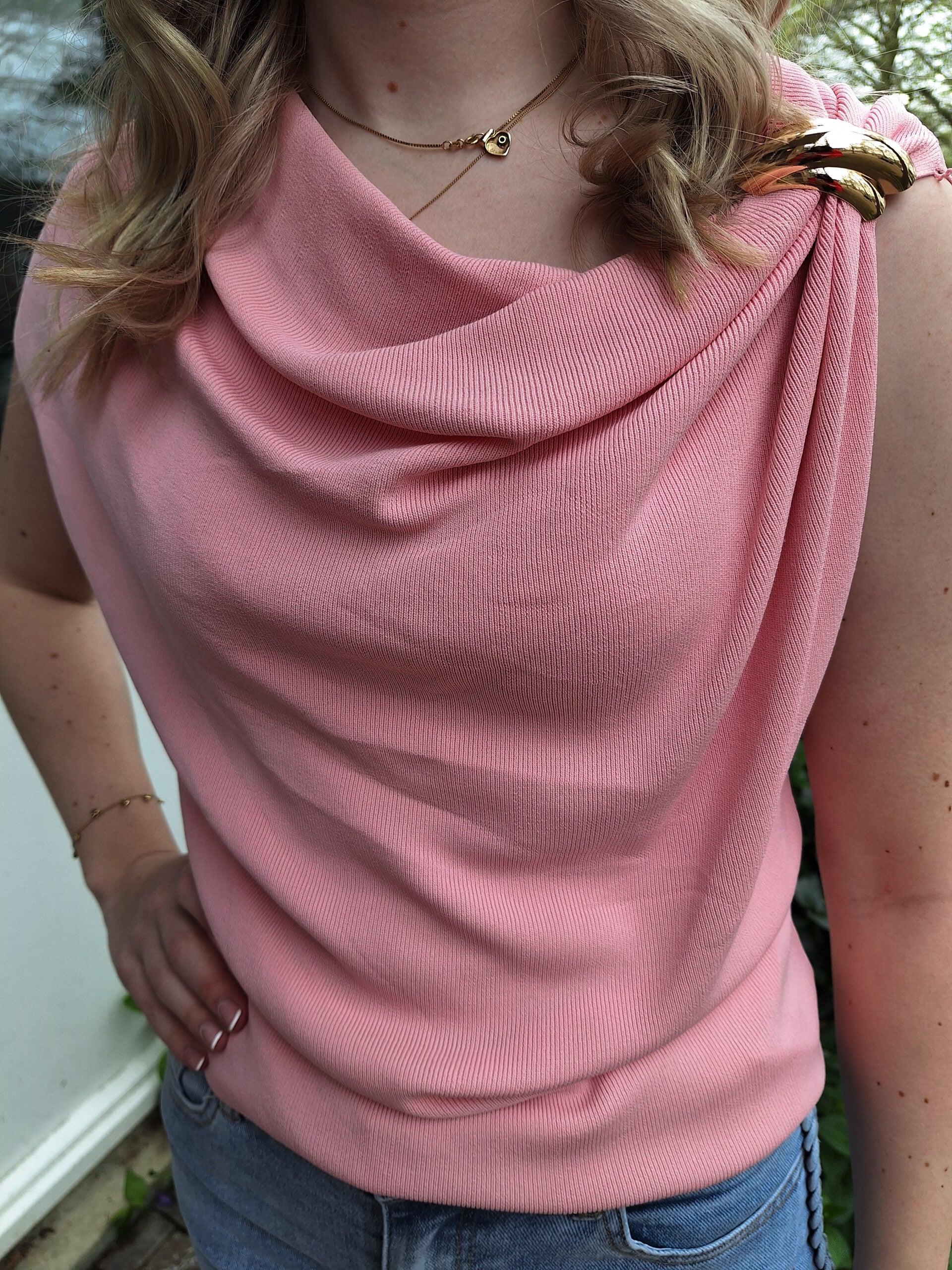 Leuke gedrapeerde top met gouden detail. Gemaakt van ribstof.