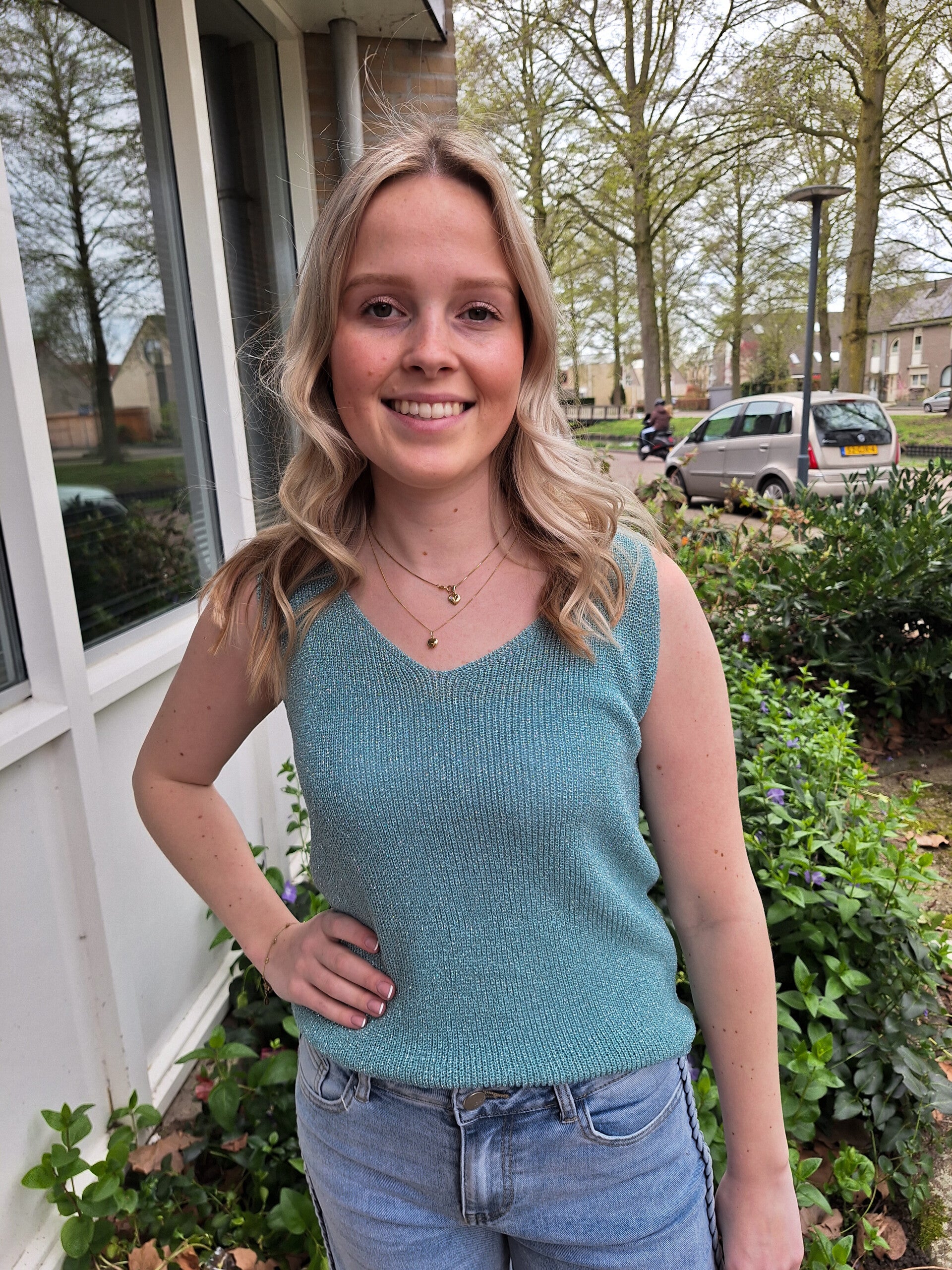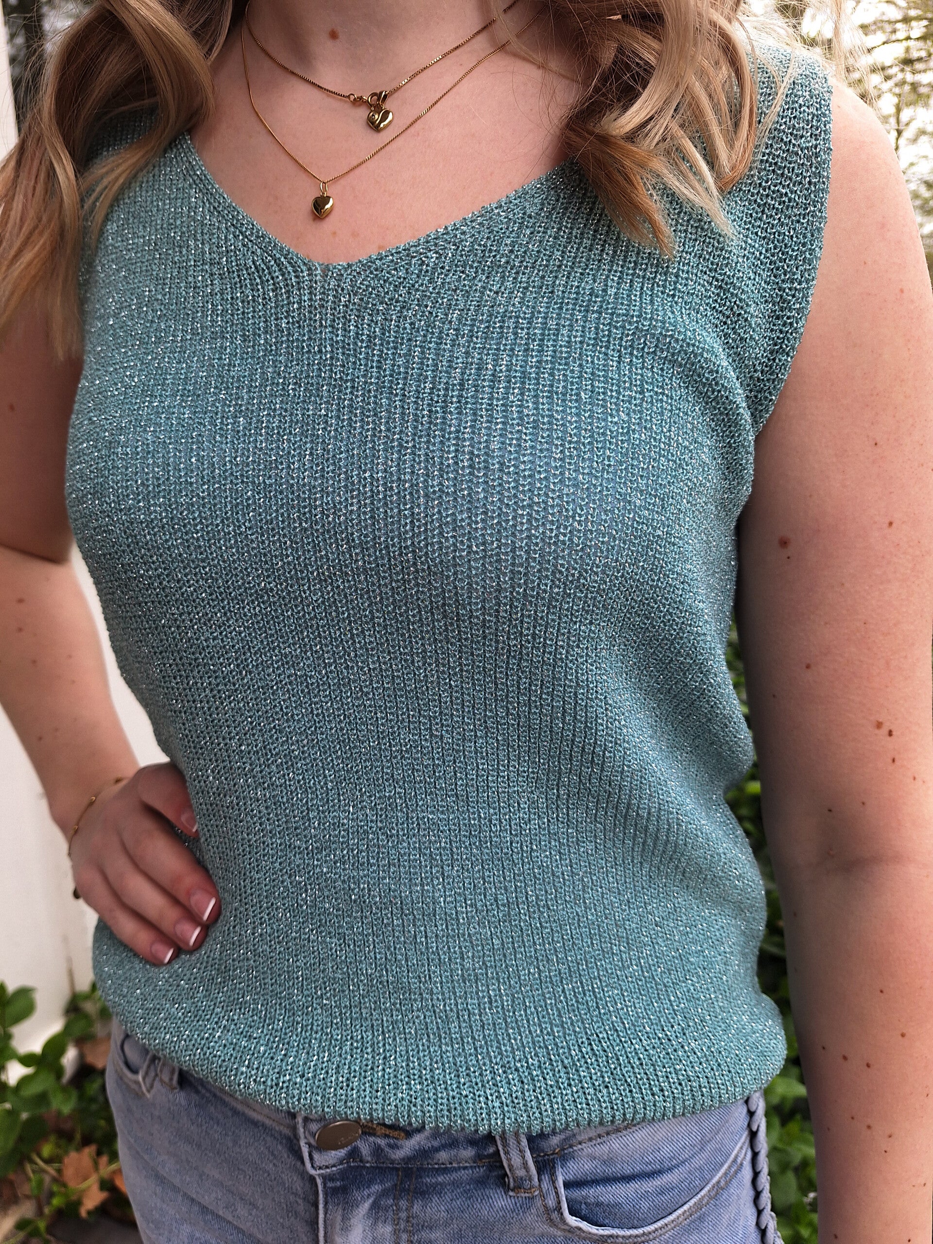 GEBREIDE GLITTER TOP - TURQUOISE